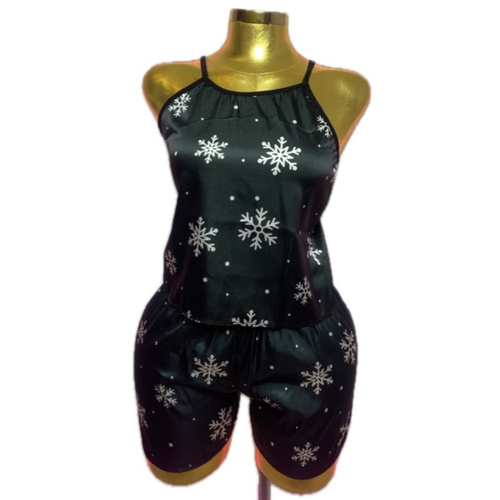 - لباس خواب راحتی با طرح تاپ و شلوارک برف وکریسمس